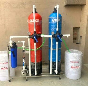 Demineralization or Deionisation is the process of removing mineral salts from water by using the ion exchange process.Mixed-bed deionizers are normally used to ‘polish’ the water to higher levels of purity after it has been initially treated by either a two-bed deionizer or a reverse osmosis unit.